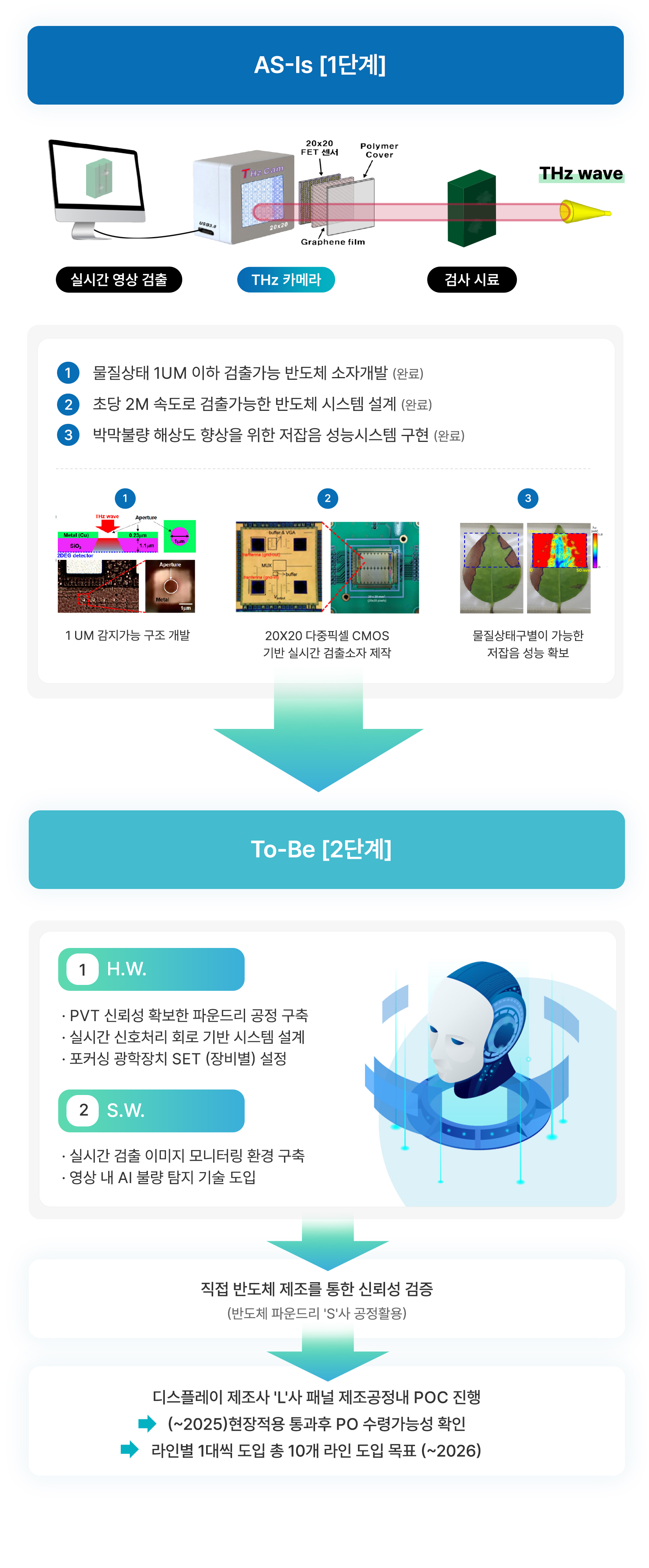 1단계에서 THz 기반 검출·소자·시스템의 핵심 기술을 완성했다면, 2단계는 이 기술을 공정 라인에 바로 투입