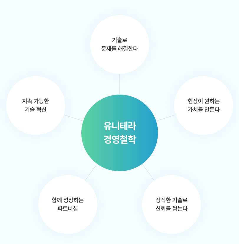 유니테라의 철학은 단순합니다. “현장을 개선하는 기술, 함께 성장하는 파트너십, 지속 가능한 혁신.”