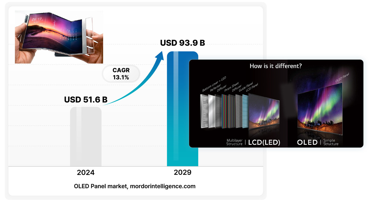 현재 OLED 패널 시장은 매년 약 13%의 높은 성장률을